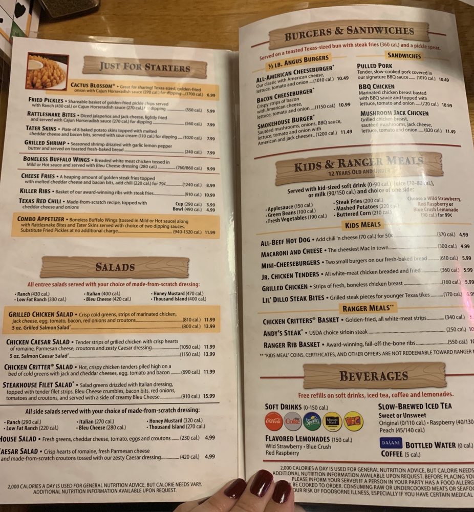 - Just For Starters: Indulge in the famous Texas Red Chili or the hand-breaded Boneless Buffalo Wings.